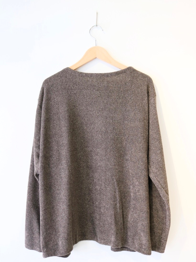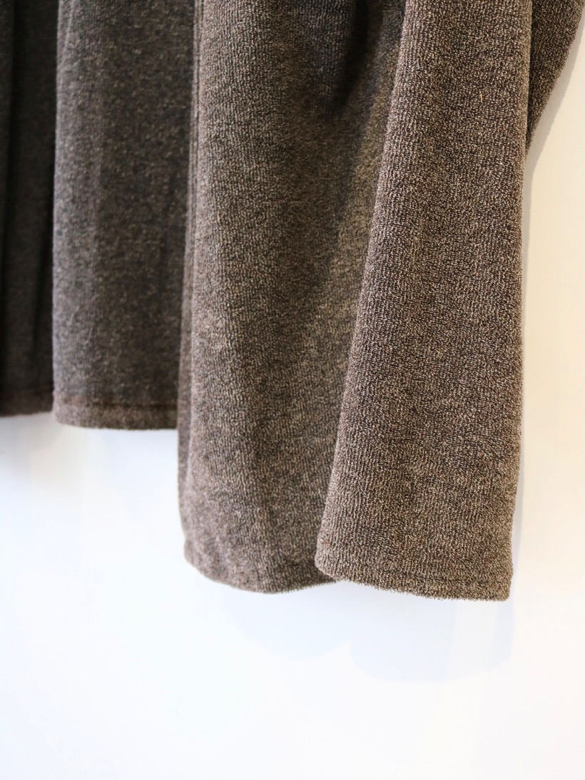 こちらのパイルボレロは半袖などのカットソーの上から合わせてもらえるとループパイルの優しく包み込まれる感覚を味わってもらえると思います。
